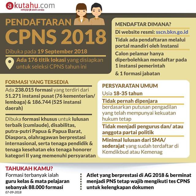 Pendaftaran calon pegawai negeri sipil (CPNS) resmi dibuka pada 19 September 2018.